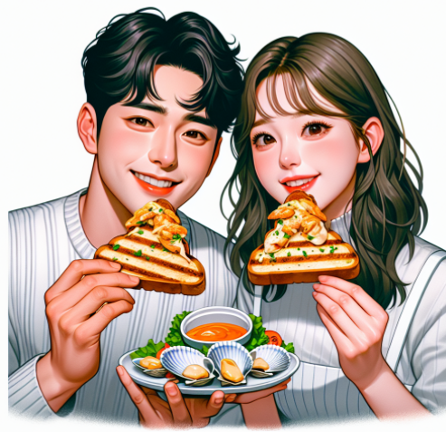 - 특징: 신선한 조개류(바지락, 가리비, 키조개 등)를 숯불에 구워내어, 불향과 함께 바다의 맛을 그대로 느낄 수 있는 요리입니다. 구우면서 나오는 육즙과 불의 향이 어우러져 독특한 풍미를 자랑합니다. 여기에 버터나 치즈, 마늘 등을 곁들이면 풍미가 한층 더 깊어집니다.