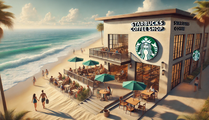 동해 해변가에 있는 스타벅스 지점